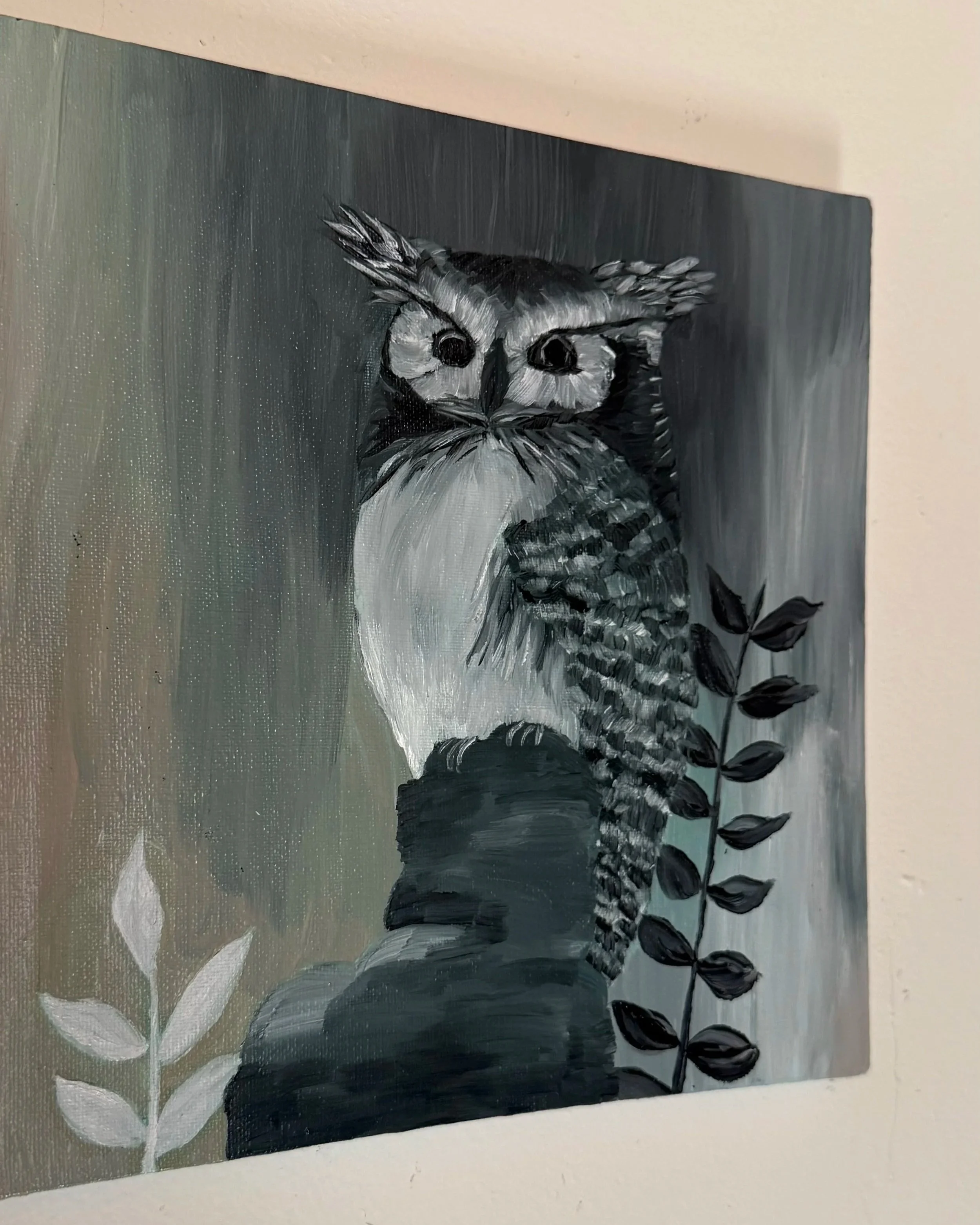 Store Fawn. 5.5"x8" Ink on paper. 2024. $15.00 Add To Cart Added! Floret. 5.5"x8" Ink on paper. 2024. $15.00 Add To Cart Added! Threshold. 11"x14" Ink on paper. 2022. $35.00 Add To Cart Added! Cerulean Blossom. 5"x7" Watercolor on paper. 2023. $15.00 Add To Cart Added! Prana. 18"x24" Watercolor on paper. 2024. $65.00 Add To Cart Added! Starry Night -Van Gogh. 16"x20" Acrylic on canvas. 2020. $25.00 Add To Cart Added! Happy Hour. 5.5"X5.5" Watercolor on paper. 2023. $20.00 Add To Cart Added! Springs Renewal. 5"x7" Acrylic on paper. 2023. $35.00 Add To Cart Added! Honesty. 16"x20" Acrylic/Mixed Medium on Canvas. 2025. $75.00 Add To Cart Added! Harvest. 8"x10" Acrylic on canvas. 2025. $50.00 Add To Cart Added! Flora. 10"x10" Oil on canvas. 2025. $45.00 Add To Cart Added! Screech Owl. 10"x10" Oil on canvas. 2025. $65.00 Add To Cart Added! Coastal. 8"x10" Oil on canvas. 2025. $45.00 Add To Cart Added! Morning Brew. 5"x7" Watercolor on paper. 2023. $15.00 Add To Cart Added! Vernal. 5.5"x7" Watercolor on paper. 2023. $15.00 Add To Cart Added! 7am. 9"x12" Acrylic on paper. 2023. $45.00 Add To Cart Added! Hydrangea Harmony. 9"x12" Acrylic on Paper. 2022 $45.00 Add To Cart Added! Grey Horned Owl. 24"x36" Acrylic on canvas. 2021. $125.00 Add To Cart Added! Saw-Whet Owl. 12"x12" Acrylic on canvas. 2019 $65.00 Add To Cart Added! Layers Upon Layers. 24"x36" Acrylic on canvas. 2024. $75.00 Add To Cart Added! The Botanist. 36"x36" Acrylic on canvas. 2024. $375.00 Add To Cart Added! Whimsical Wings. 12"x12" Acrylic on canvas. 2021. $55.00 Add To Cart Added! Fleet Foxes. 22"x28" Acrylic on canvas. 2024. $75.00 Add To Cart Added! Untamed. 48"x60" Oil on canvas. 2025 $650.00 Add To Cart Added!